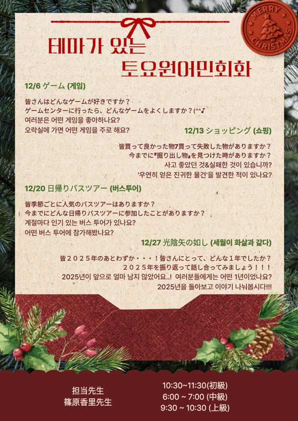 ♪ 2025년 12월 토요 원어민 회화 ♪